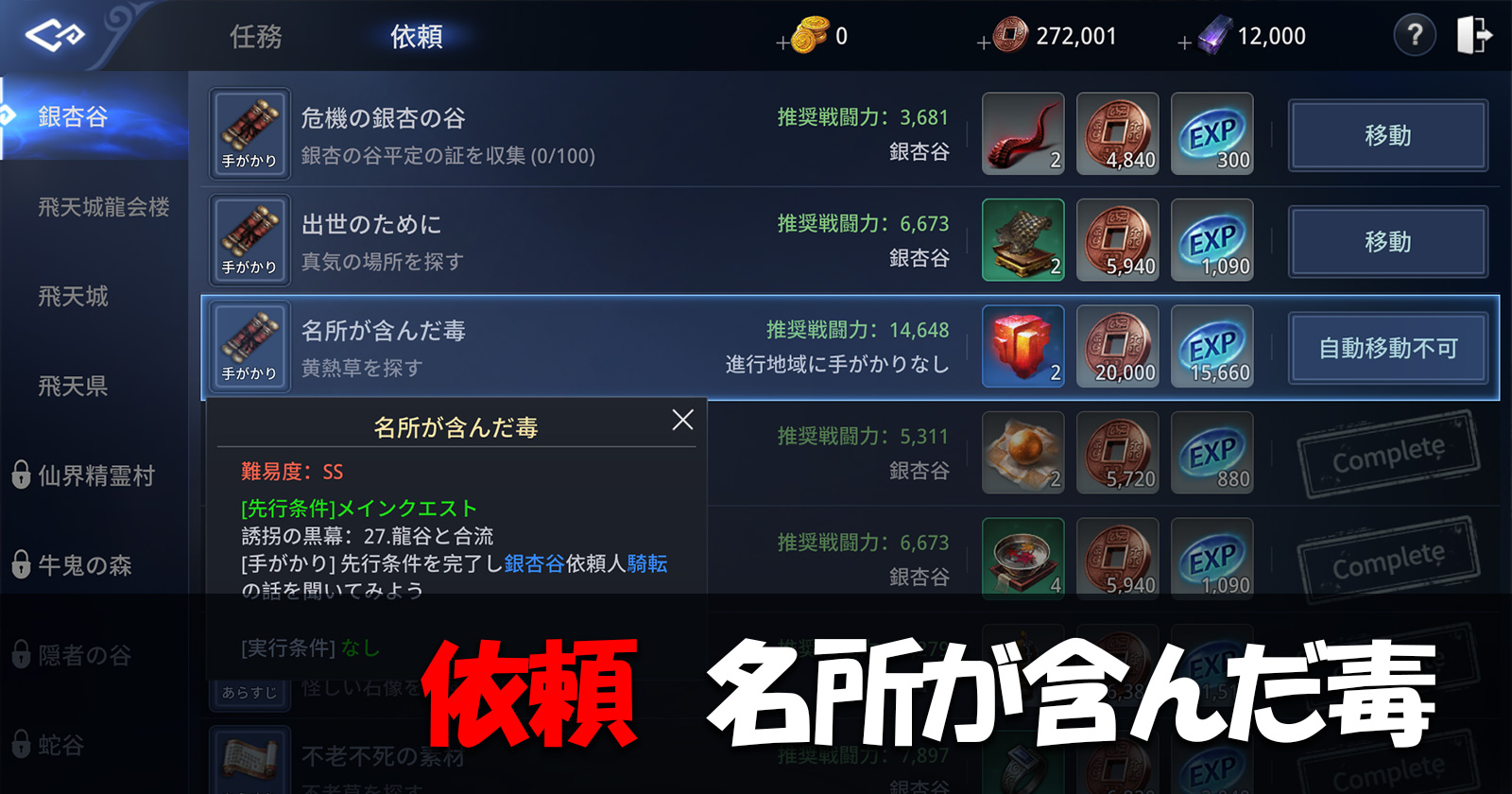 MIR4の銀杏の谷の難易度SS依頼「名所が含んだ毒」の攻略法をまとめました。